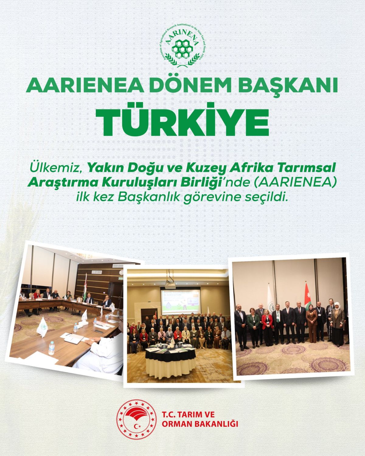 Türkiye, Yakın Doğu ve Kuzey Afrika Tarımsal Araştırma Kuruluşları Birliği’nde (AARIENEA) ilk kez başkanlık görevine seçildi.